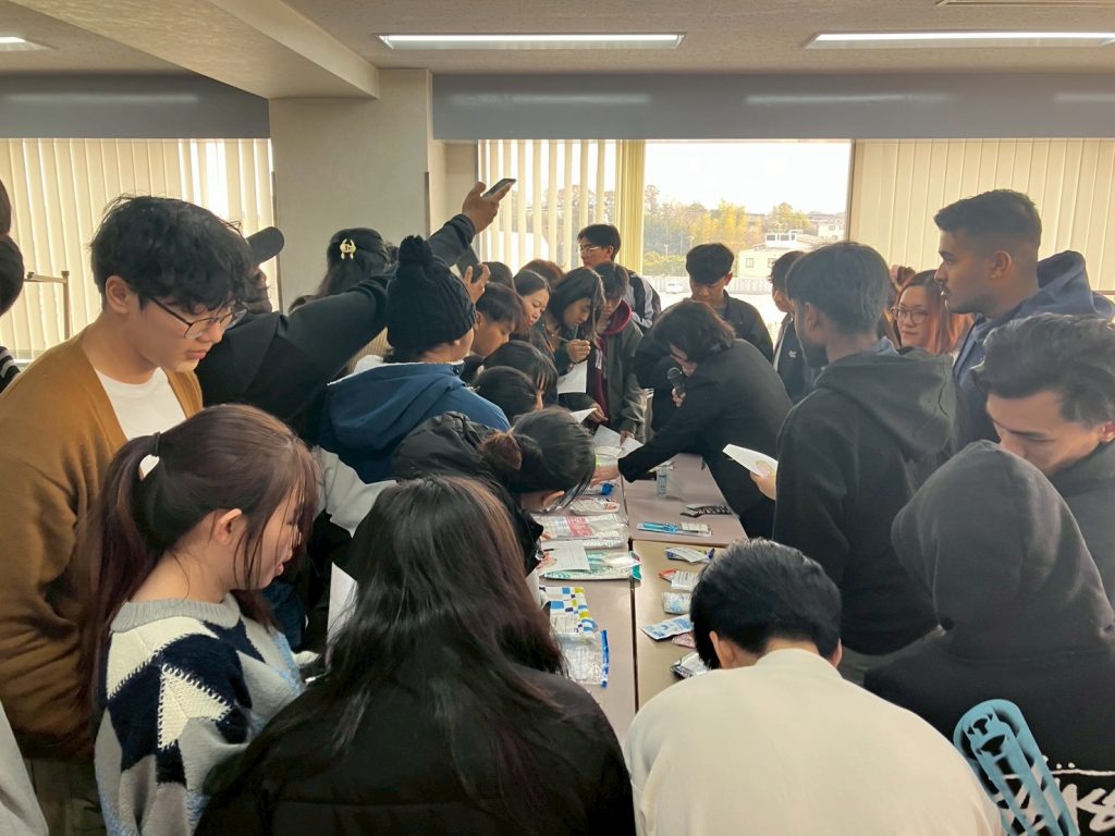 学生たちは、グループで、防災カルタを楽しみながら、書いてある「5・7・5」の文を意味を知り、日ごろ考えておいたほうが良い防災の知識を学びました。